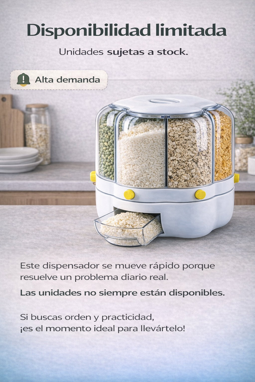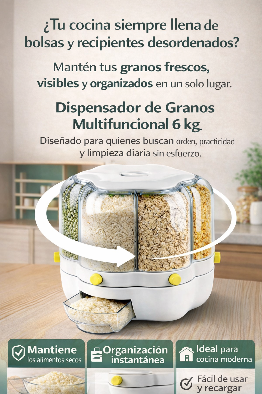 Dispensador de Granos Multifuncional 6 kg - Organización y Frescura en un Solo Paso ¿Cansado del desorden en tu cocina?
