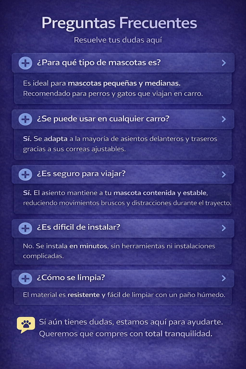 “Muy fácil de instalar y mi mascota va cómoda.”